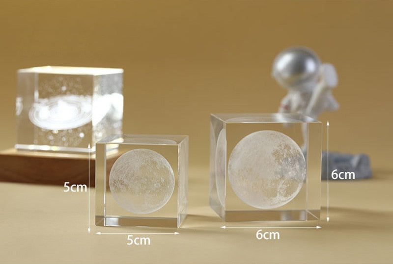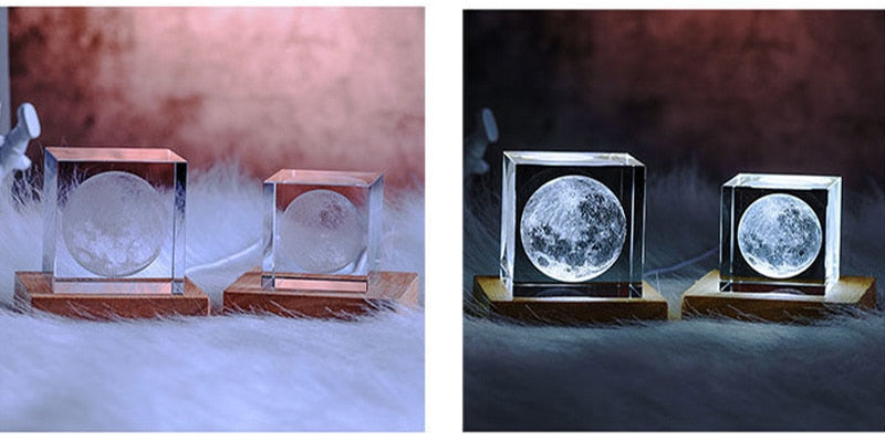 3D Moon Crystal Glass Cube